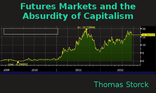 The human race has always grown or otherwise gathered food, and there has probably always existed some kinds of exchange. But the growing or obtaining of food and the exchange of one desired object for another was always seen as a subordinate part of the life of the human race. Obtaining food was for the sake of living, exchange was for the sake of living better. But with capitalism this common-sense relationship of means and ends is very often perverted. Now all production is for the sake of exchange, social life becomes subordinated to the processes of production and exchange, and they in turn become subordinated to more exotic economic practices. This is because the capitalist imperative is always more sales, more profit, more speculative ways of making money, without any inherent limit or even a notion of what all this activity is for, except for the enrichment of those who own or control the economic processes. Capitalism as the separation of ownership from work creates a class of individuals who are removed from the production of useful objects and who regard the objects produced as primarily commodities to be sold, rather than useful goods to be consumed. Hence the imperative for more sales, ever increasing profits and market share, regardless of demand, because there is no natural limit, no end for which one is striving and with which, when obtained, one is satisfied. Let us look at the interesting example of the futures market in grain and see what we can learn from it as to the nature of the capitalist approach to organizing an economy.