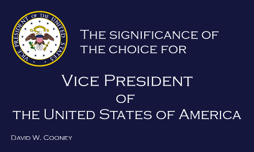 The choice by the candidates for President of who will be Vice President is frequently viewed as a “sign” among the party supporters revealing more about the “real” positions of the presidential candidate. Voters should examine the significance of these choices. Just how much does the choice represent the presidential candidate’s own views, and how much is it an attempt to appease those portions of the party who wouldn’t otherwise want to support the candidate? Does the candidate for Vice President represent the presidential candidate’s own position, or is it an attempt to get the voters to overlook where the candidate’s views don’t really align with their own?