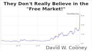 As financial news reports were accusing the WallStreetBets group of essentially being insurrectionists, and accusing them of being no better than those who had rioted in the U.S. Capitol on the day the electoral vote was officially being counted, the company whose app was primarily being used by the WallStreetBets group prevented all transactions of GameStop and several other companies in which the group had heavily invested. A day or two later, the app was updated again so they could sell, but not buy, shares in those companies. In other words, the app would only allow activity that would result in the price going down – like the hedge fund investors wanted. Now, you can only sell a stock if someone can buy it, so this group was prevented from buying while others participating in the stock market were still allowed to.