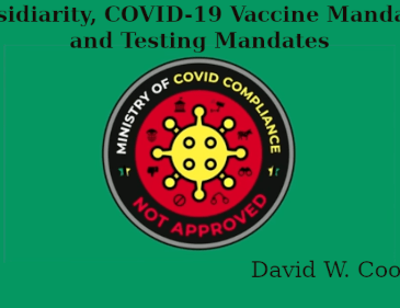 I would like to apologize for the delay in getting articles posted lately. There have been several factors for this. One of those will be the topic of this post. This article will consist of a series of letters between my employer and myself regarding a vaccine mandate issued by the governor of my state … More Subsidiarity, COVID-19 Vaccine Mandates, and Testing Mandates